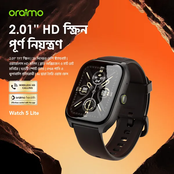 oraimo Watch 5 Lite 2.01″ HD IP68 Smart Watch